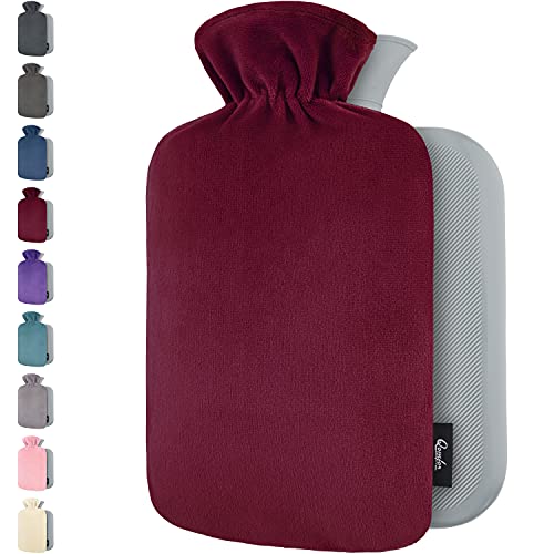 Qomfor Varmvattenflaska med skydd UK – 1,8 L stor mjuk vattenflaska med fleeceskydd – fluffig för smärtlindring, ryggsmärta, vuxna och barn – bra present till kvinnor (Bordeaux)