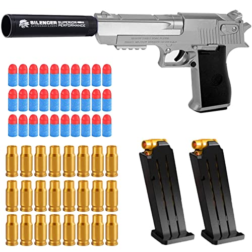 Leksakspistol, ökenörnpistol med mjuka bollar, EVA-skumleksaksblaster, mjuk bollpistol, med mjuka bollar och laddare, för 6+ gåvor till barn (silver)