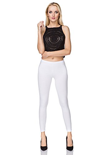 SOFTSAIL Leggings kvinnor full längd klassisk bomull damleggings dambyxor mjuka stretchiga byxor för damer plus size, Vitt, XL