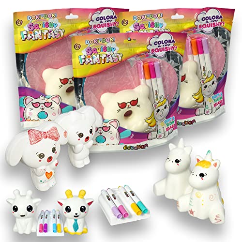 Sbabam, Squishy Fantasy, Doki Doki, barnspel från tidningskiosken, Squishy-leksaker, små mjuka dockor i gummi, 3-pack påsar, presentidéer för barn, 3 år och äldre