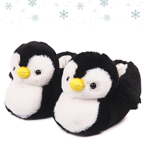 Dam söt pingvinna djurtofflor nyhet mysiga luddiga tofflor mjuka plysch vinter varma herrskor (svart, nummer 8_punkt_5)