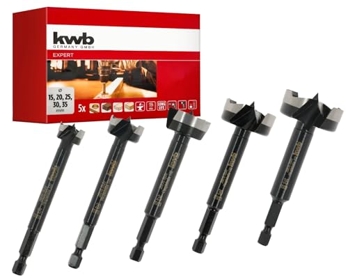 kwb Forstner-borrsats 5 delar (15–35 mm, längd 88 mm, sexkantsskaft utan rivning, slitstark för hårt och mjukt trä, trälåda ingår)