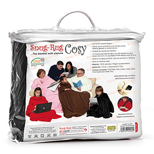 CKB LTD Tät matta mysig filt med ärmar äkta tät matta ärmade filtar supermjuk 160 gsm fleece mjukt tyg överdimensionerade ärmar och påse ficka vuxna storlek (svart)