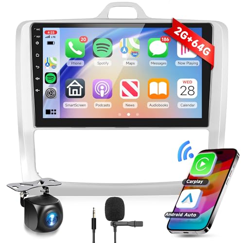 4G+64G Android bilradio för Ford Focus 2 3 Mk2 Mk3 2004–2011 Carplay Android automatisk trådlös, Hodozzy 2 tum pekskärm bil stereo 2 din GPS-navigering, WiFi, Bluetooth, DSP, FM/RDS+bakkamera