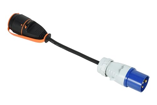 Electraline 01741 15 cm IP44 Caravan Adapter till CEE-kontakt (2P+T) med Schuko Electralock-uttag utrustad med låsmekanism som förhindrar oavsiktlig frånkoppling av kontakten, H07RN-F 3G1,5 mm kabel