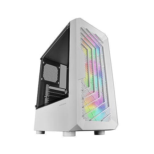 Mars Gaming MC-TOR Vit, ATX Gaming Semitower-fodral, full sidofönster, främre nätdesign, 3 x FRGB 120 mm främre fläktar, dubbelkammare design