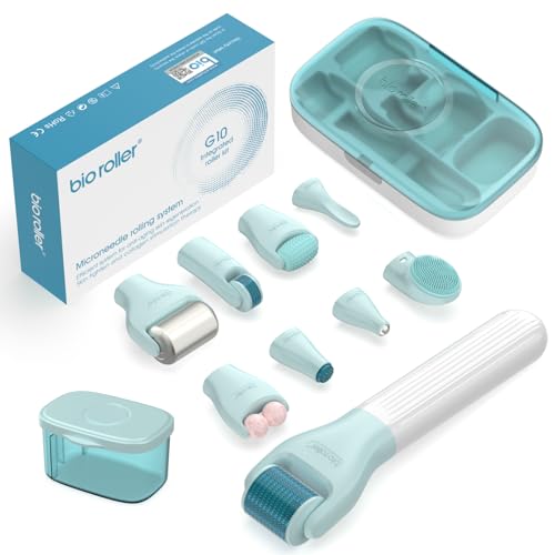 Derma Roller Microneedling Set 10 - i - 1 för hudvård /-massage/-rensning, 720 - pinnar barthyllare 0,5 mm för hårförlust, Microneedling - roller mot faltor, stora porer, sprickmärken & narrar (G10)