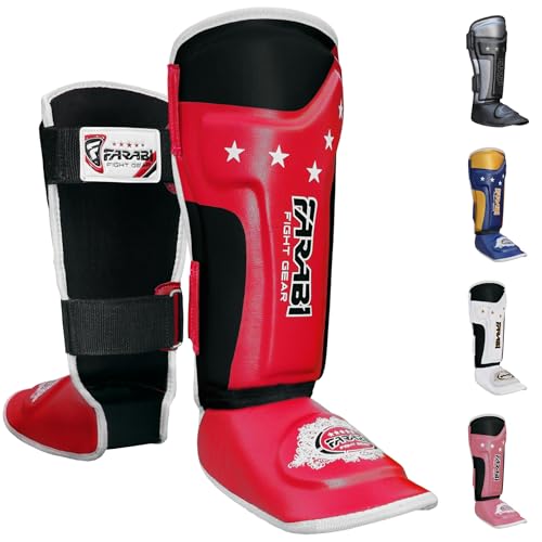 Mytra Fusion vuxen skenbensskydd, benskydd för boxning, MMA, Muay Thai, kampsportträning (röd, S/M)