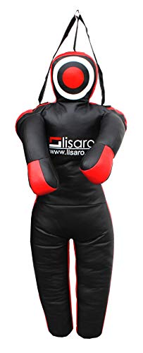Lisaro Straps Training Dummy Storlek S – 130 cm förfyllda | Box-dummies | med öglor (remmar) | svart-röd | fylld | hängande | grappning, boxning, kampsport, Jiu-Jitsu, brottning, MMA