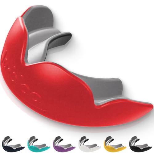 lobloo PRO-FIT patentsökt, professionellt intryckslöst munskydd med dubbla densitet för högkontaktsporter som MMA, hockey, fotboll, boxning, rugby. Stor +14 år, Röd