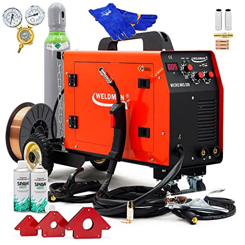 WELDES SET Weldman MICRO MIG 200 MIG/MAG Inverter Svetsmaskin 200Amp Svetsmaskin 3in1 FLUX MMA, Röd