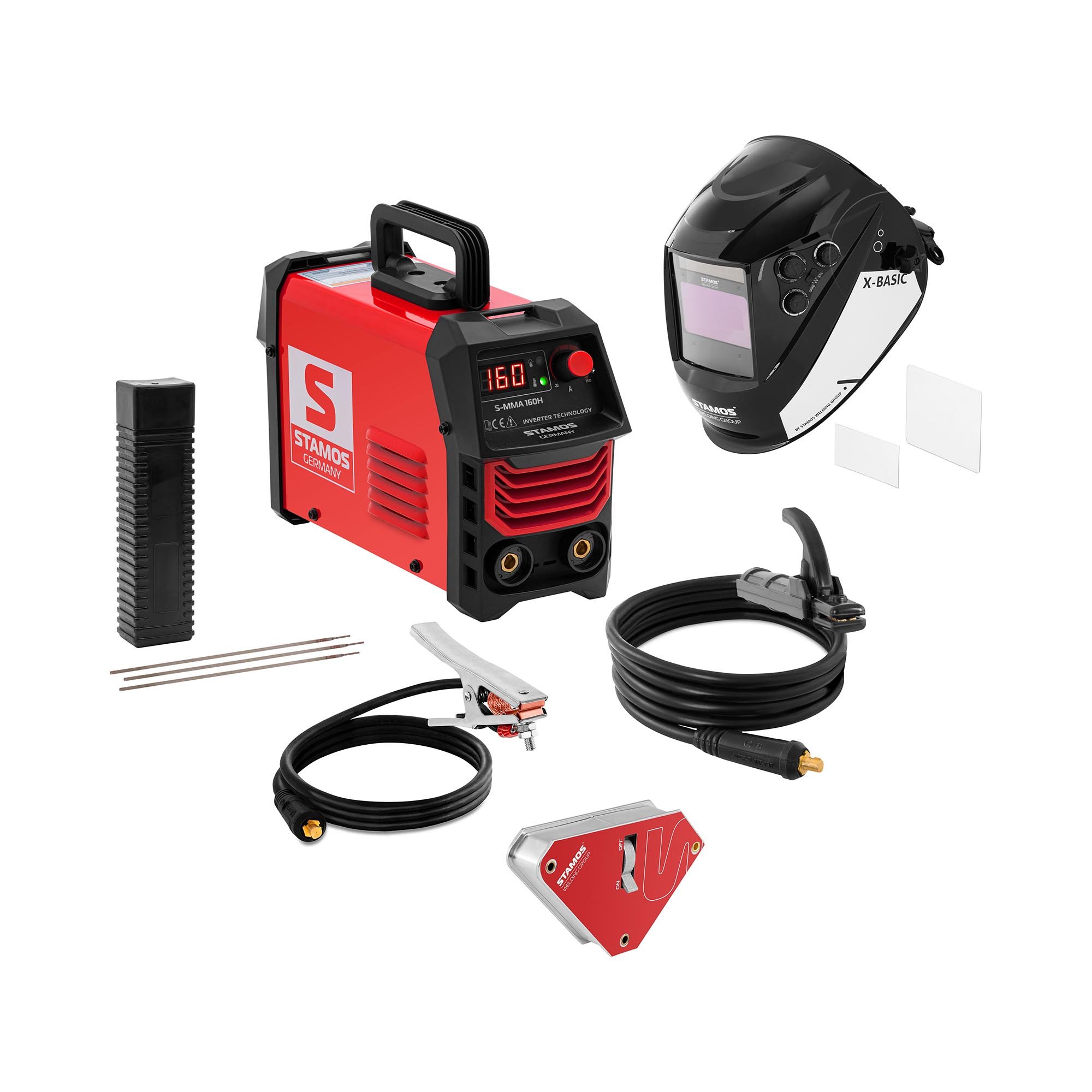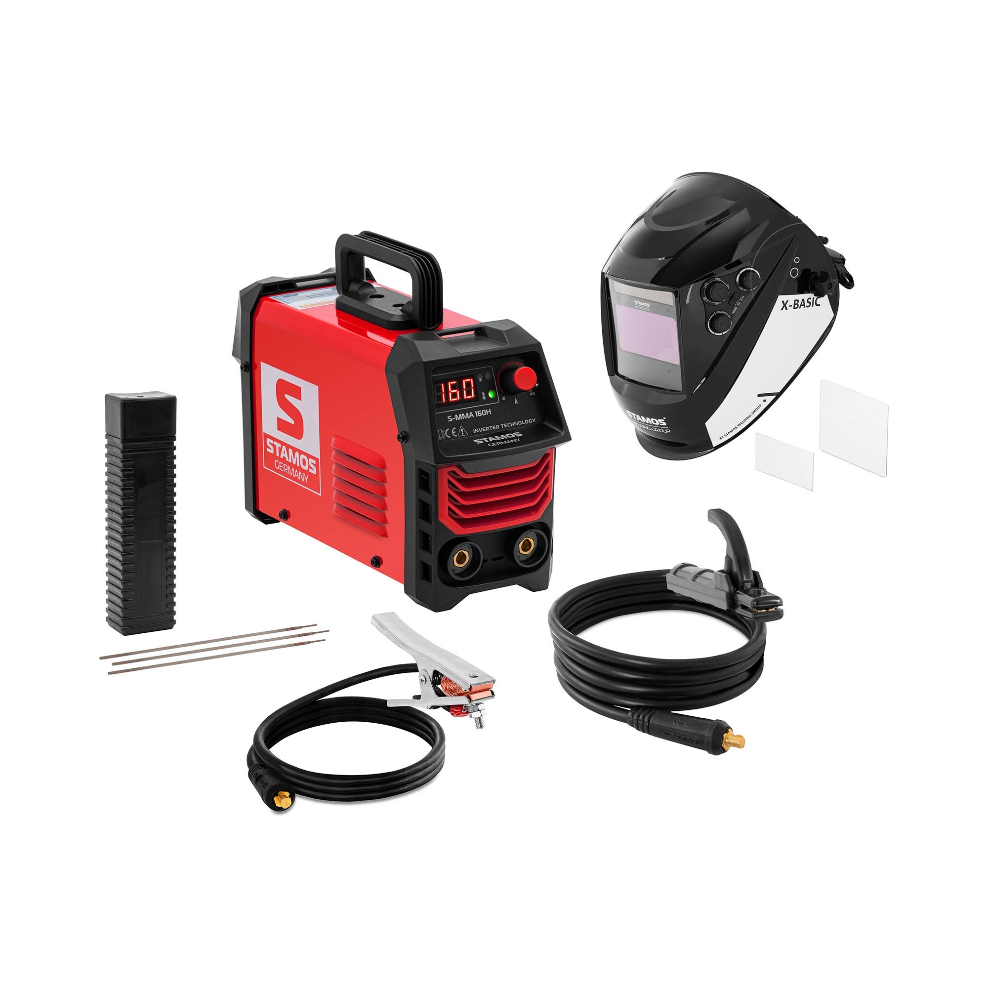 Stamos Welding Group Svetsset - MMA-svets 160 A Svetshjälm X-Basic Svetselektroder basiska Ø 2,5 x 350 mm 5 kg