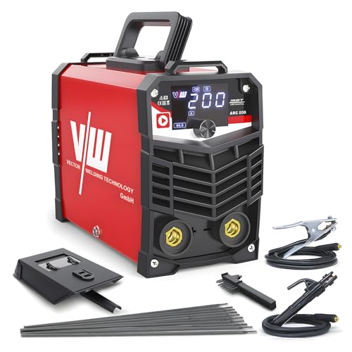 VECTOR WELDING 200A elektrodsvets, ARC/MMA inverter svets, portabel svets med IGBT-teknik och LED-display för nybörjare och proffs, ARC 200, med varmstart, bågkraft,hela uppsättningen 1