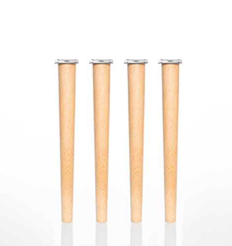 Bokträben med monteringsplatta installerad. Set med 4 möbelben 8,10,12,15 cm höga, raka koniska träben (4 stycken 42 cm, naturliga)
