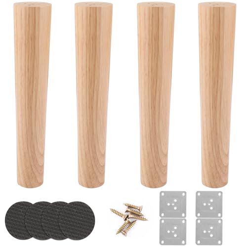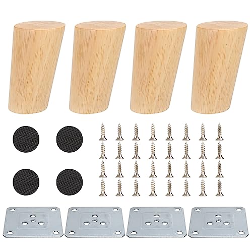 4pcs Möbelben i Trä 12cm Solida Avsmalnande Träsoffben Ersättande Sneda Möbelfötter med Monteringsplatta, Skruvar och Halkfria Mattor för Soffa TV-skåp Säng Soffbord Teskåp