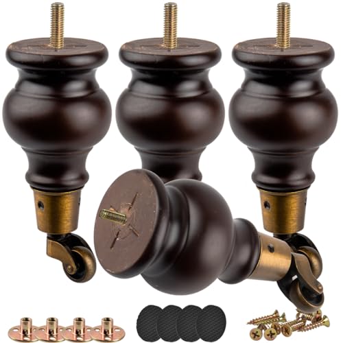Btowin VCF 15 cm (6 tum) möbelben i trä med hjul, 4 st valnöt massiva träben runda kalebass trä vänt gör-det-själv ersättningsbullfötter för fåtölj, ottoman, skåp