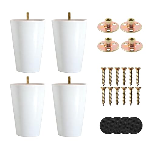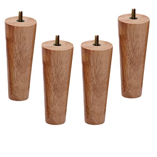 TAIANJI 4PSC Koniska möbelben av trä, 12 cm, träbordsben med gänga, fästplatta, halkfria mattor för soffa, bord, soffa, skåp, ottoman