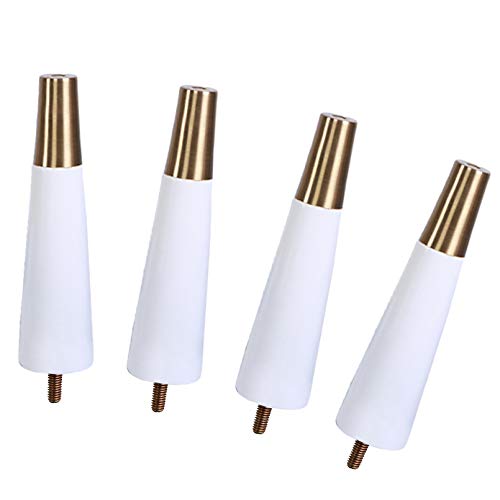 Set om 4 möbelfötter, möbelben i massivt trä, koniska kaffebordsben, ersättningsmöbelben, sockelfot, soffben, med mässingsfötter, förinstallerade M8-bultar, vit, 12–35 cm (12 cm)