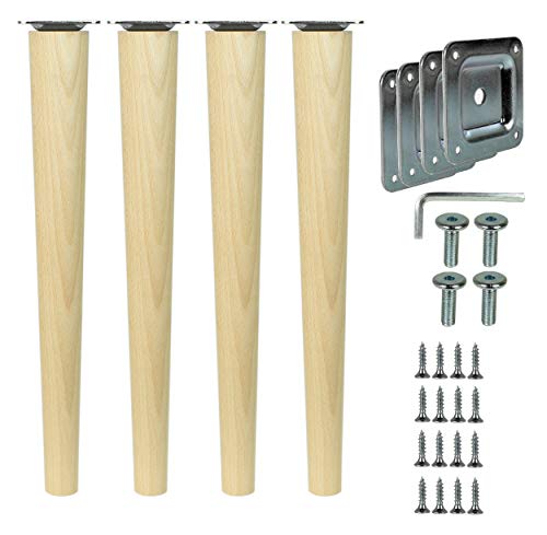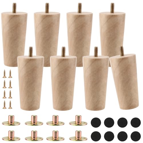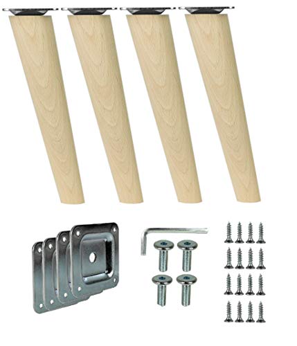 4 stycken möbelfötter i trä, sneda 8 cm, möbelben, trä, koniska möbelfötter, massivt trä, ersättning, träben, bordsben med monteringsplattor och skruvar och filtglidare, skåp, fötter, trä för soffa,
