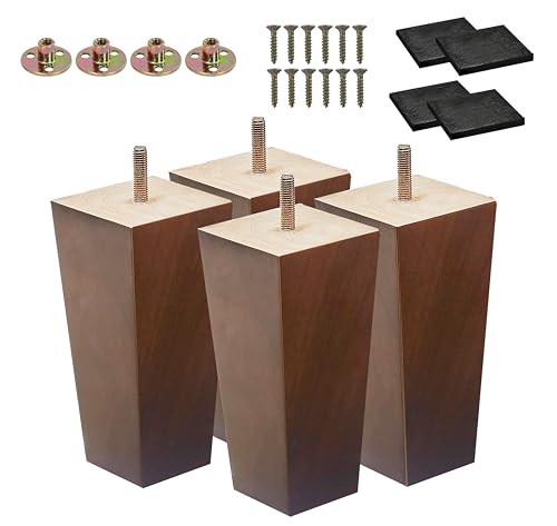 Knpwer Uppsättning av 4 möbelben i trä, 15 cm solida avsmalnande träsoffben, ersättande möbelfötter med monteringsplatta, skruvar och halkfria mattor för soffbordsstol, teskåp