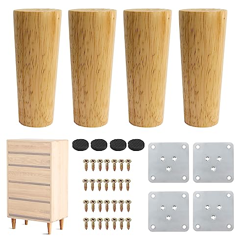 Knpwer SHEENO Uppsättning av 4 möbelben i trä, 15 cm solida avsmalnande träsoffben, ersättande möbelfötter med monteringsplatta, skruvar och halkfria mattor för soffbordsstol, teskåp