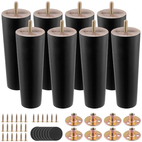 FUNSUEI 8 st 15 cm möbelben i trä, bordsben av trä, ersättningsstolben med monteringsplattor och skruvar, soffben i trä, för fåtöljer, soffor, ottomaner, skåp, svart