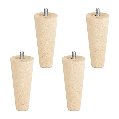 Set med 4 möbelfötter rå bok H 150 mm/konisk Ø 45/25 mm med skruv M8 från Sotech