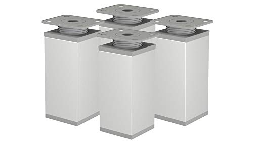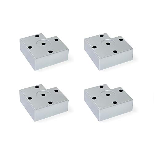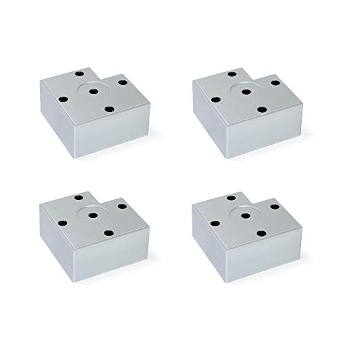 Alusfera möbelfötter – justerbar höjd – möbelfötter justerbara – möbelfot – skåpfötter – möbelben 4 stycken 40 x 40 mm – metallfötter för möbler 150 mm – möbeltillbehör – silver