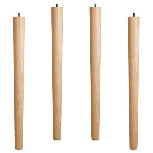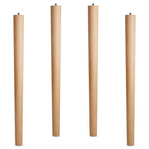 SOTECH Set med 4 st Bordsben av bok rå H 710 mm/Ø 60/40 mm med skruv M10 Perfekt för kök och matbord/Bordsfötter trä möbelfötter