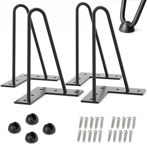 Drenky Möbelfötter 20 cm höga, 4 stycken skänk fötter hårnålsbordsben i metall, svarta fötter för möbler, hårnålsben 2-stångs ben med golvskydd och skruvar för gör-det-själv möbelprojekt