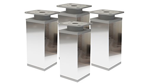 ALUSFERA Möbelfötter – justerbar höjd – möbelfötter justerbara – möbelfot – skåpfötter – möbelben 4 stycken 40 x 40 mm – metallfötter för möbler 100 mm – möbeltillbehör – krom