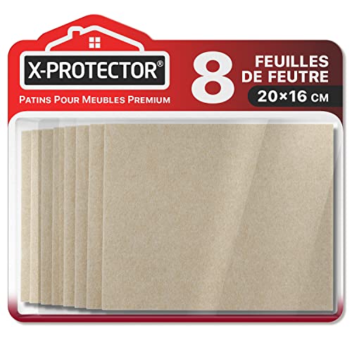 Filtkuddar för möbler X-PROTECTOR - 8 Pack 20 x 15 x 0.5 cm Premium Självhäftande filtkuddar! Klipp Möbeltassar för alla golv för Möbelfötter du behöver – Bästa Möbeltassar för stolar för Trägolv!