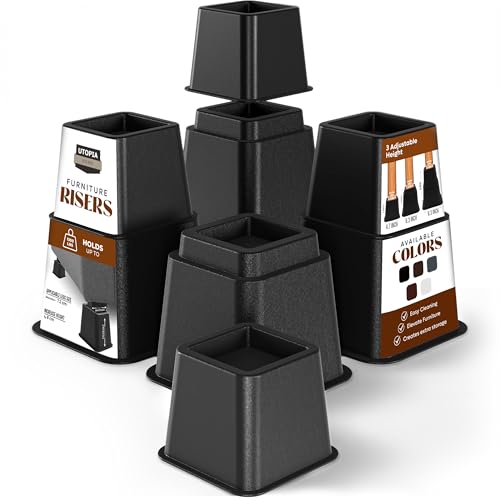 Utopia Bedding 8-delad justerbara möbelhöjare (4 höga och 4 korta) – kraftig stigare med stark platsbesparing – sänghöjare, bordhöjare, stol eller soffupphöjare (3 till 8 tum) (Svart)