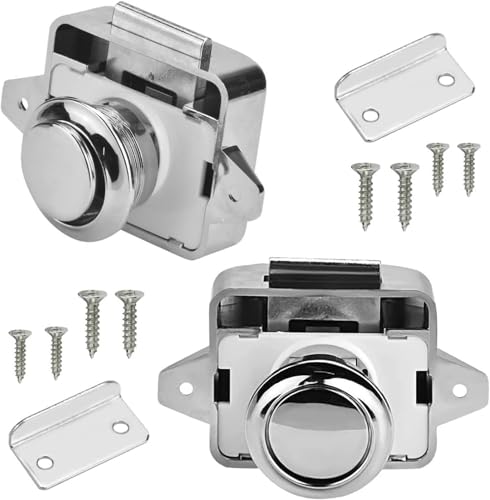 Latrt 2 stycken push lås, husbil, trycklås, möbellås för husbil, yacht, lådor, skåpdörrar (krom)