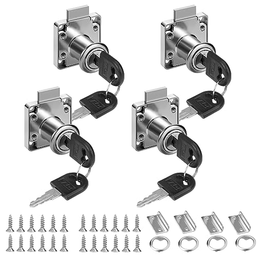 4 Uppsättningar 22 mm Möbellås Med Nyckel, Rostfritt Stål Skåplås, Lådlås för Lådor Och Skåp (4 Delar Olika Knappar)