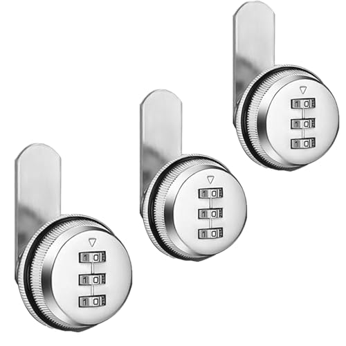3 stycken Catelves brevlåda kombinationslås kod för 3 siffror, brevlådelås, skåplås, möbellås, lösenord, lådlås, för brevlådor, lådor, skåp, 30 mm silver