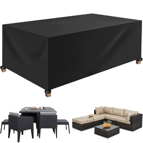 LAMUNI Överdrag för Trädgårdsmöbler, 420D Oxfordtyg Utomhus Bordsskydd, 300x250x100cm Trädgårdsbordsskydd Möbelöverdrag Utemöbler, Vattentätt Överdrag för Bord och Stolar, Vindtät, Dammtätt