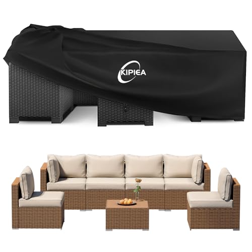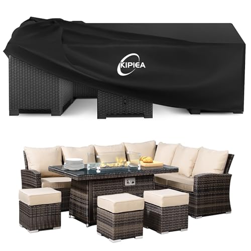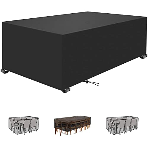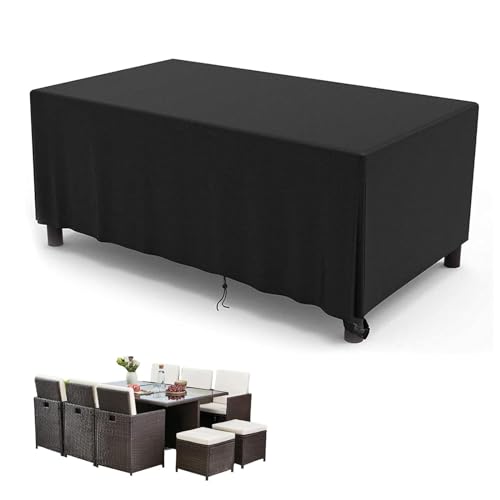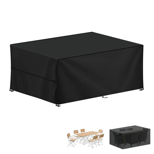 Kipiea överdrag för Trädgårdsmöbler Vattentätt, 420D Uteplats Möbel öVerdrag Vindtätt, Rektangulärt Utomhus Uteplats, Möbelöverdrag Anti-UV, Bordsskydd för Uteplats Tårresistent- 259x188x71cm