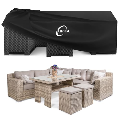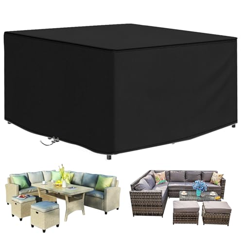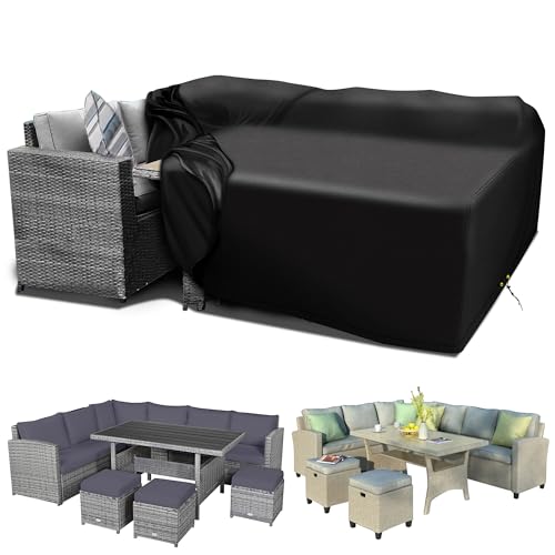 Kovshuiwe, stora trädgårdsmöbler, 250 x 210 x 90 cm, vattentätt möbelöverdrag till uteplatsen, uteplats, bordsskydd, 420D slitstarkt oxfordtyg, rotting, möbelöverdrag, vindtätt, anti-UV (svart)