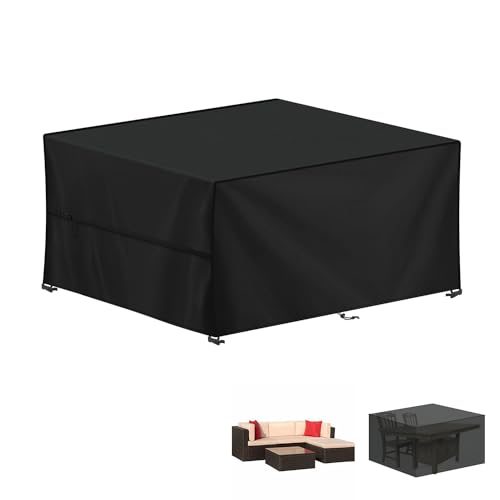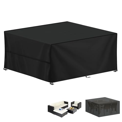 SanGlory Trädgårdssalong överdrag rektangulärt vattentätt trädgårdsbordsöverdrag för trädgårdsmöbler, lounge, bache, trädgårdsbord, skyddande möbelöverdrag (polyester, 250 x 250 x 90 cm)