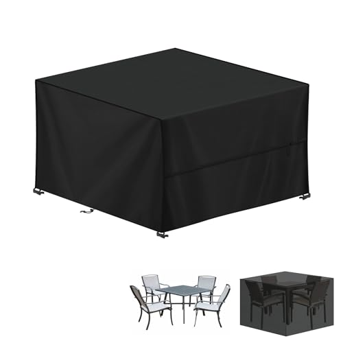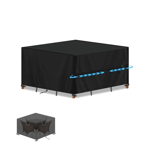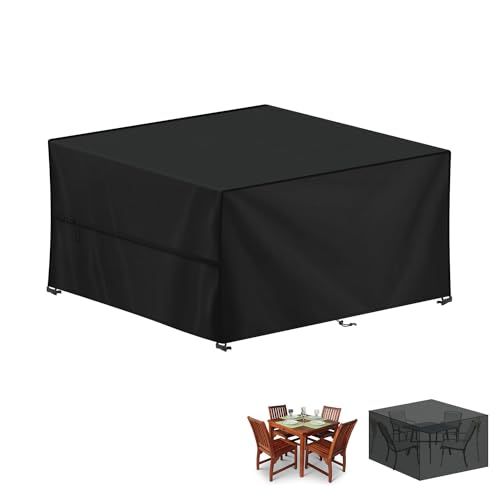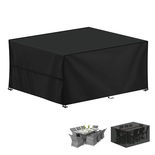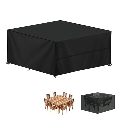 RICHIE Överdrag för trädgårdsmöbler vattentätt, 420D Oxfordtyg 200 x 200 x 90 cm rektangulärt trädgårdsbordsöverdrag uteplats bordsöverdrag vattentät anti-UV rotting möbelöverdrag för möbler set