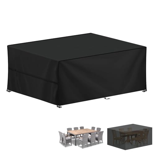 LAMUNI Överdrag för Trädgårdsmöbler, 420D Oxfordtyg Utomhus Bordsskydd, 300x250x100cm Trädgårdsbordsskydd Möbelöverdrag Utemöbler, Vattentätt Överdrag för Bord och Stolar, Vindtät, Dammtätt