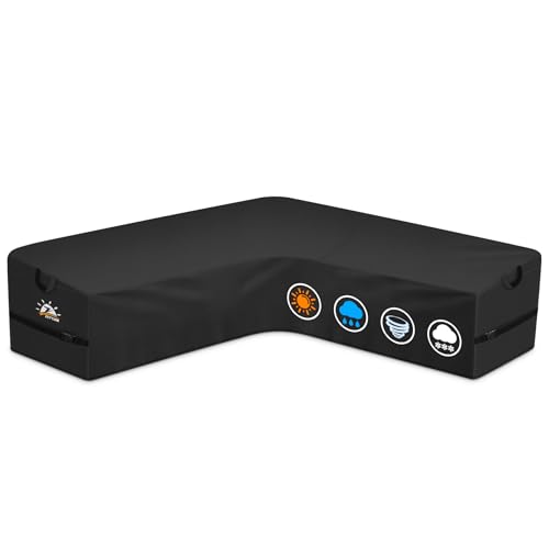 Zettum 280L x 215R x 80W cm L-format överdrag för trädgårdsmöbler utomhus – 600D vattentätt möbelöverdrag, skydd för utemöbler, presenning för loungeset