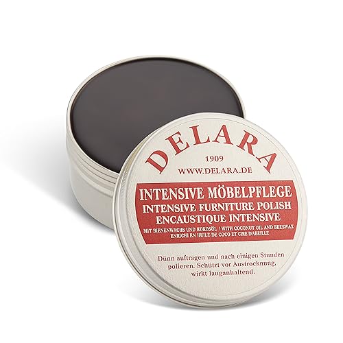 DELARA Intensiv möbelvård, mycket högkvalitativt möbelvax med bivax och kokosolja – Tillverkad i Tyskland (brun, 100 ml)