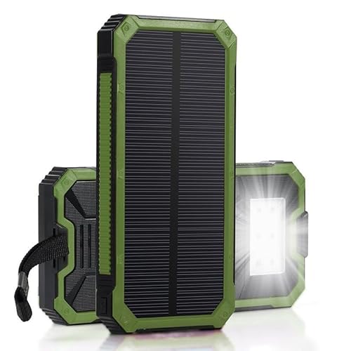 Power Bank 20 000 mAh, solenergibank, snabbladdning, mobil utomhus, bärbar laddare med 4 USB-portar och ficklampa, mobiltelefon, kompatibel med smartphone, iPhone, Samsung, Huawei iPad surfplattor