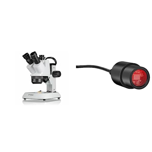 Bresser trinokulärt stereomikroskop Analyth STR Trino 10x – 40 x med dimbar LED-upp- och genomljus och bärhandtag för mobil användning & BRESSER MikrOkular Mikroskopkamera, Full HD, USB 2.0, Svart