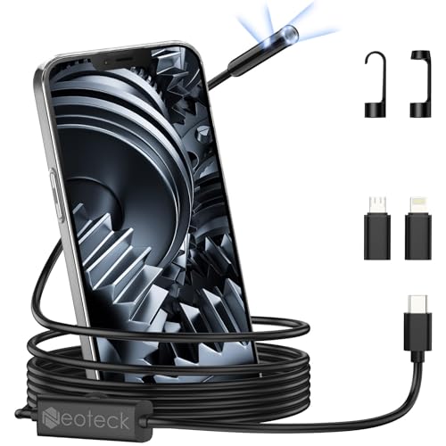 Neoteck Dubbellins Endoskop Mobil med 8 + 1 justerbara LED-lampor, IP67 1920P Vattentät HD Borescope och 5 Meter Halvstyv Kabel för Android- och iOS-system