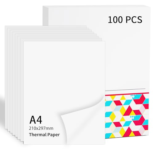 Termopapper A4-8,27 x 11,69 tum (210 mm x 297 mm) kompatibel med Phomemo M08F/M832/M833/M834/M835 mobil skrivare för kontrakt, foton, teckningar, läxor, 10 år termopapper, 100 ark