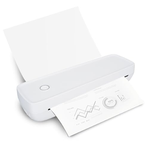 Mobil Skrivare, A4 Thermal Printer Bluetooth Mini Printer Wireless för Resande Rucker för Kontor Hemma (Vit)