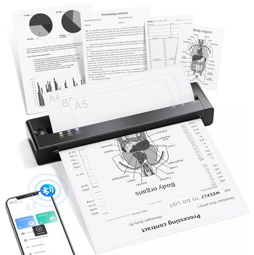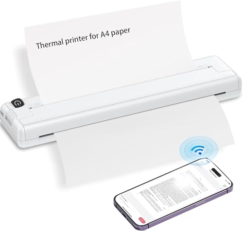 Termisk Skrivare A4, Bärbar Skrivare Väger endast 585 g, 300DPI Skarp Utskrift & 1500 mAh Långt Batteriliv, Bluetooth Kompatibel med iOS & Android, Trådlös Bläckfri för Mobil Kontorsresor